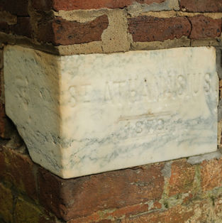 St. Athanasius Episcopal Church was built between 1879-1880 on a lot on Webb Avenue in Burlington donated by the NC Railroad Company. It was named "Saint Athanasius" in honor of a Greek church leader during the 3rd and 4th centuries. Designed by Johannes Adam Simon Oertel, St. Athanasius is Carpenter Gothic style, which is a style of architecture common in North America in the late 19th century that utilized Gothic forms carved and created with wood. This style imitates the stone carved features of Gothic architecture and adapts Gothic elements such as pointed arches, steep gables, and towers to traditional American wood frame construction.